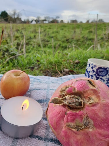 Beginning the meal with a simple statement of gratitude does wonders for the conscious realisation of consumption. Make up your own words – say what you feel comfortable with. This kind of statement acts as a marker, the ‘beginning’ of the feast. But we shall not eat until we have said thank you. This pause before eating gives us time to reflect upon the action.
